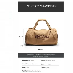 This canvas bag is designed with the modern traveler in mind, offering a large capacity of 55cm in length and 28cm in height. Whether you’re heading out on a weekend getaway or embarking on a longer journey, this bag has ample space to store all your essentials.