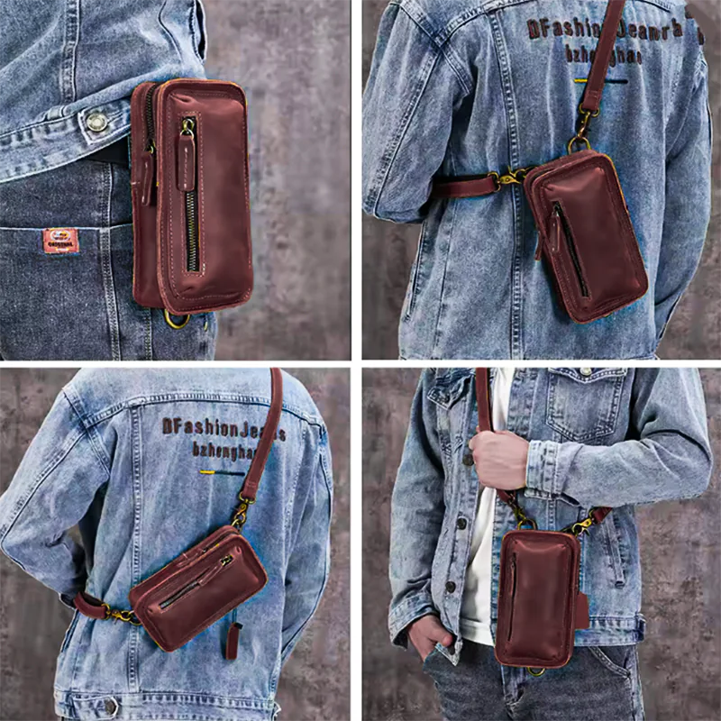 Crafted with high-quality genuine leather, it ensures durability and a classy vintage look that suits casual, office, and travel use. The adjustable strap lets you wear it as a crossbody bag, shoulder bag, or waist pouch, making it versatile for all occasions.