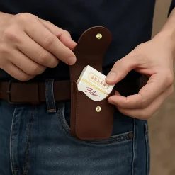 এটি একটি প্রিমিয়াম কোয়ালিটির লেদার সিগারেট/কার্ড/কয়েন পাউচ কেস। এর ক্লাসিক ব্রাউন কালার ও মিনিমাল ডিজাইন এটিকে করে আরও আকর্ষণীয় ও স্টাইলিশ। এতে আছে Pure Copper Hardware ক্লিপ, যা বেল্ট বা ব্যাগে ঝুলিয়ে বহন করা যায়। স্মার্ট লোকদের জন্য এটি একটি পারফেক্ট অ্যাকসেসরিজ।
