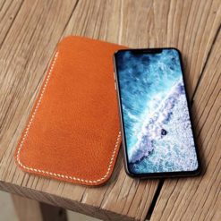 This minimal iPhone sleeve is crafted from 1.8 mm thick vegetable tanned leather and hand stitched with waxed thread to ensure durability. this sleeve will protect your large screen phone adequately when you put it into your bag or your pocket , this luxury leather will age beautifully by time.